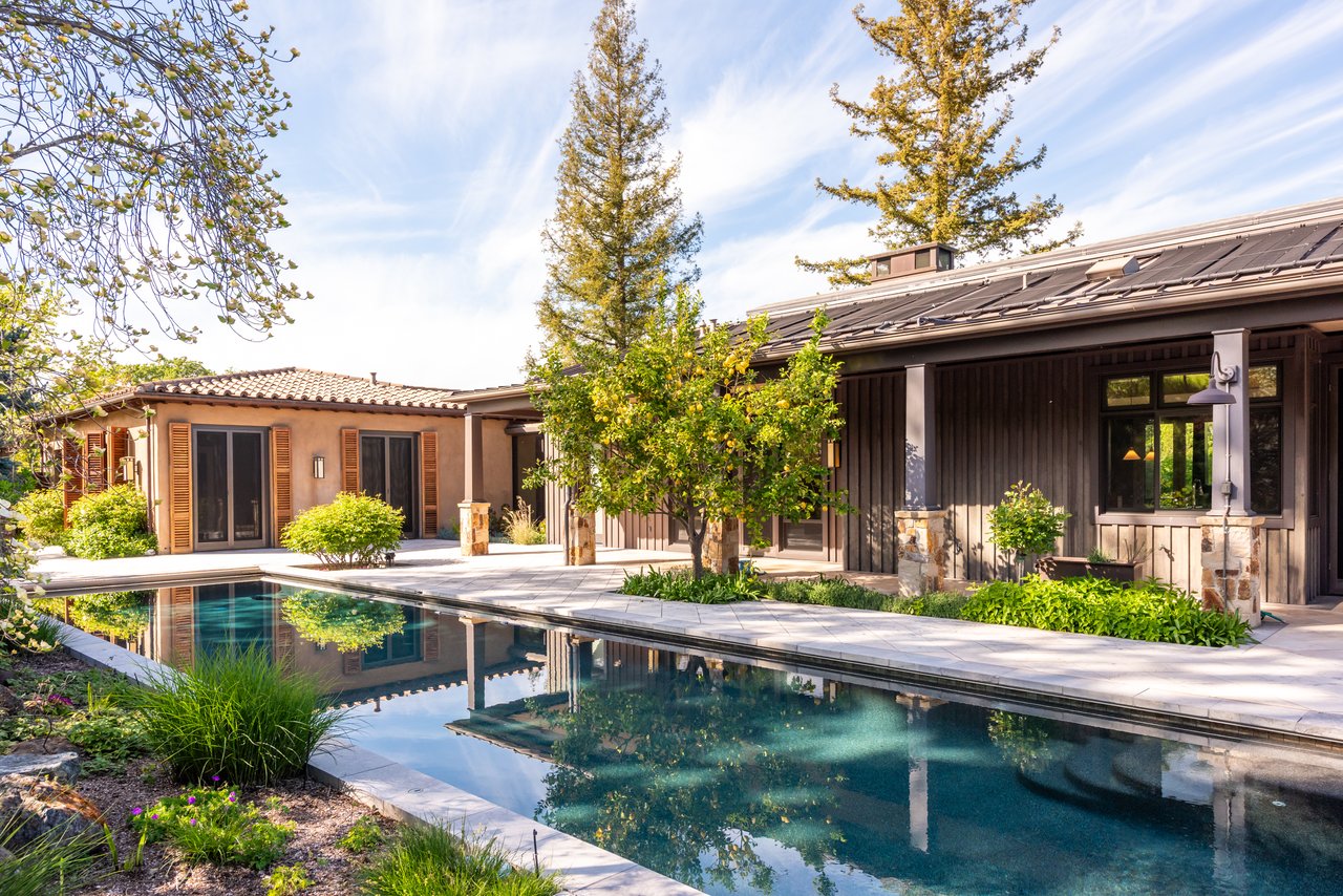 Nestled in the heart of Alexander Valley, with commanding views of iconic Mt. St. Helena and undulating vineyards below, this is a rare opportunity to own a refined wine country estate on over 10 pristine acres. With approximately 7,088 square feet, this architectural gem exudes a timeless balance between old-world elegance and contemporary luxury. The main residence, thoughtfully laid out across two stories, offers four generous bedrooms and six bathrooms, designed with both grand entertaining and intimate living in mind. Additional features include a wine cellar, large fitness studio, outdoor dinning, garden shed/workshop, animal corrals, chicken coup, fenced in pastures and multiple entertainment zones that flow into the outdoor living areas. A sparkling pool and spa, bocce court, and panoramic lounging spaces invite year-round enjoyment amidst the peaceful heritage oaks and mature Japanese maples. The estate's thoughtful layout and scale offer the ultimate wine country lifestyle: private, polished, and effortlessly sophisticated. Whether a primary residence or weekend retreat, 4030 Old Barn Road delivers an unparalleled experience of Sonoma luxury living. (Interior design & furniture is by Vesta. All furniture is available for purchase directly with Vesta.)